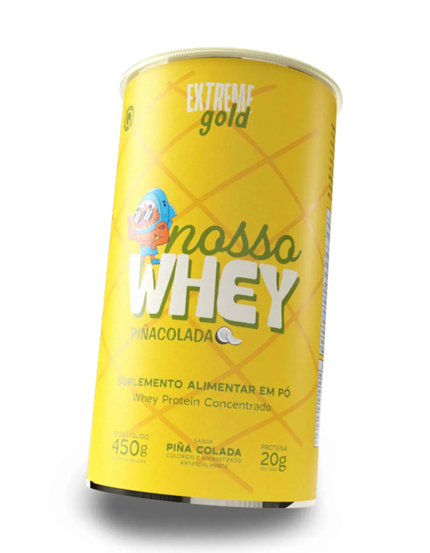 🥥🍍 NOSSO WHEY PIÑACOLADA – 450g 20g de proteína por dose + perfil completo de aminoácidos em um sabor tropical absurdo de gostoso! Refresque seu shake com o toque divertido da Gold e turbine seus músculos com estilo. 🌴 Zero glúten | Com lactose | Delícia cremosa com cara de férias!